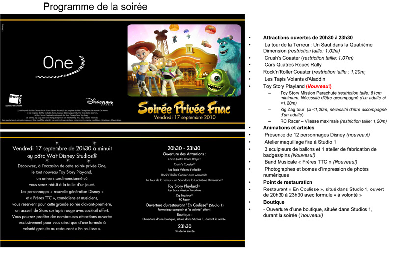 Accueil de stars, cocktail, nombreuses attractions ouvertes exclusivement, présence des personnages « nouvelle génération Disney », atelier maquillage...